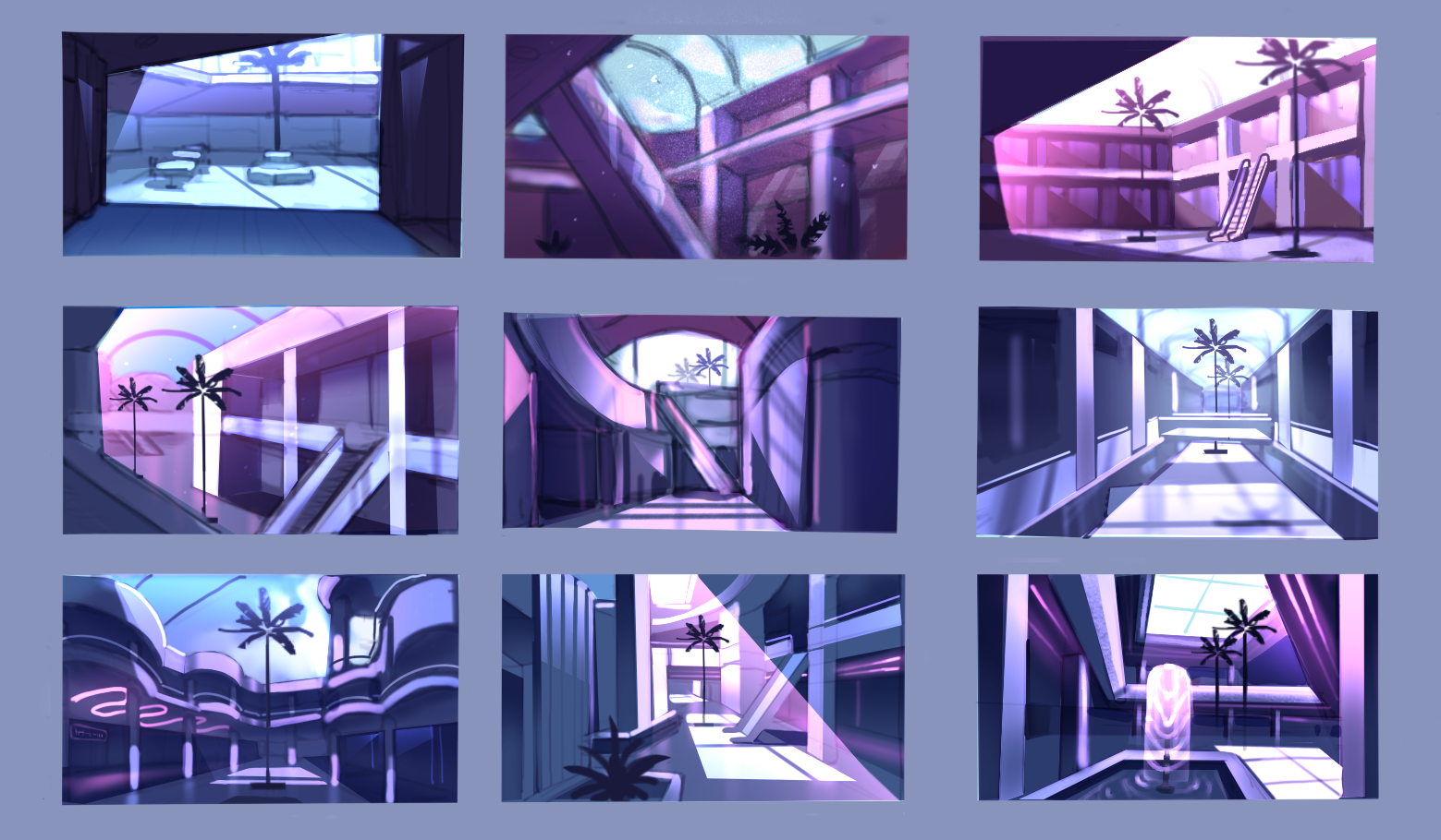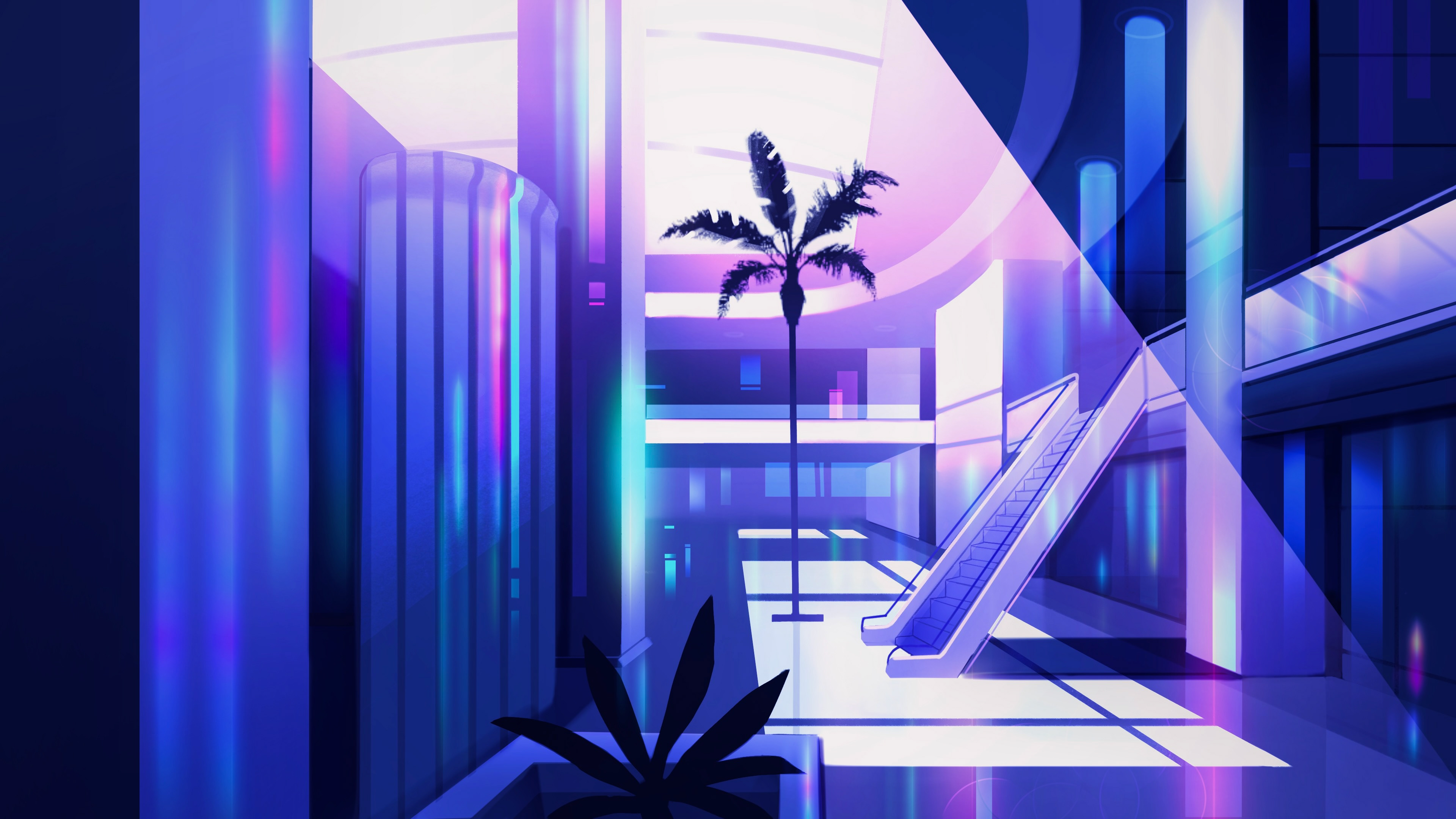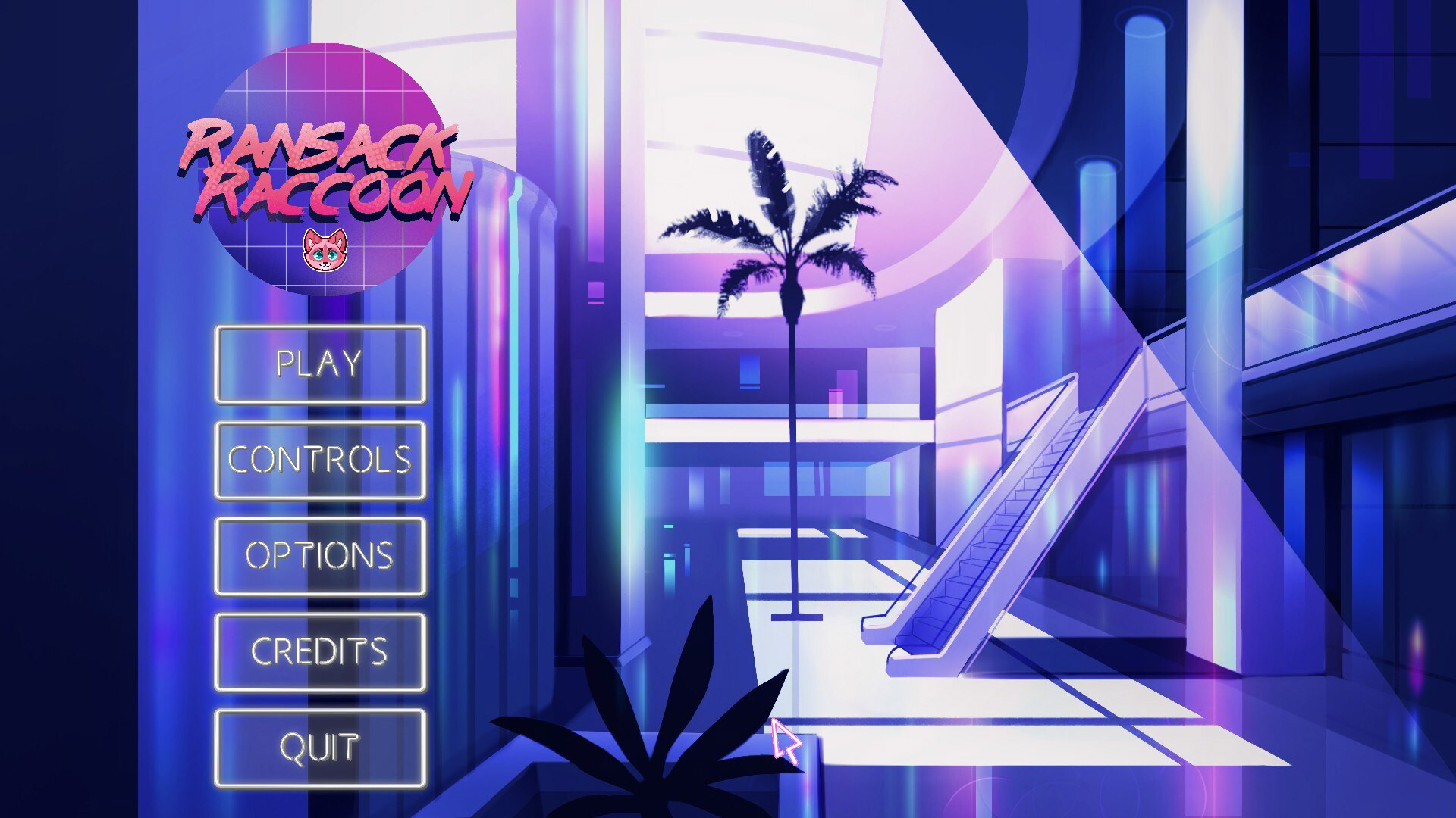 Can you hear the distant hum of a Duran Duran song playing in the background? This was the artwork used for the start screen in my sophomore game project, Ransack Raccoon. My intent was to evoke the sentimentality and nostalgia of wandering around a mall food court as child, while channeling the "totally radical" nature of American shopping malls in the 80's-90's. Palm trees and pretzels ahoy! Made using Procreate for the iPad.